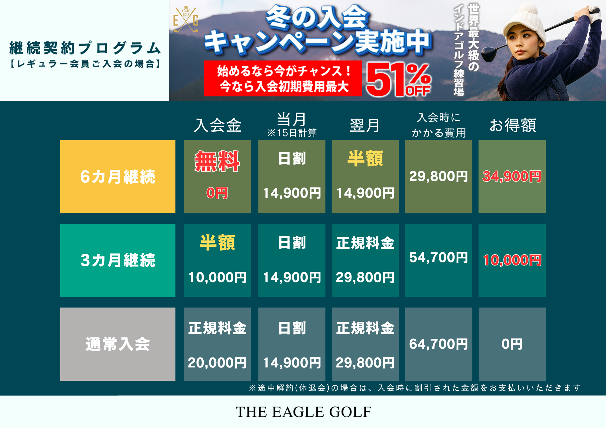 THE EAGLE GOLFでは、あなたのライフスタイルに合わせた 6つのプランをご用意しております