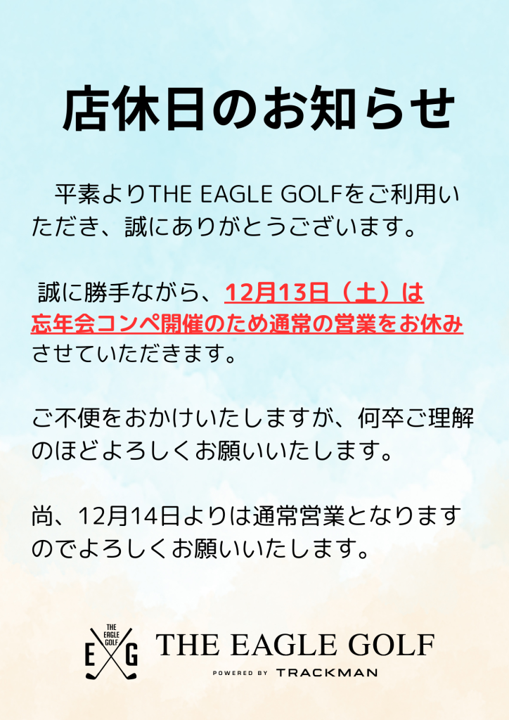12月13日は店休日です!